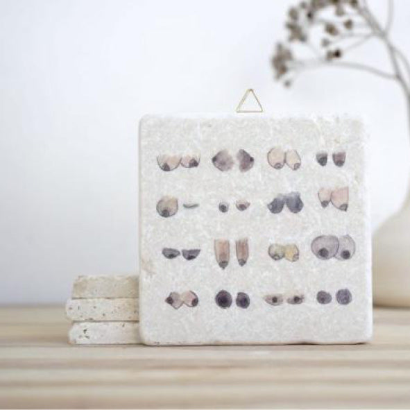 Bedruckte Natursteinfliesen (10x10cm) mit Zeichnungen, Bildern und Illustrationen der Bonner Manufaktur evimstore. Die Fliesen können ohne weiteres verbaut werden, zum Reinigen ein weiches Tuch und lauwarmes Wasser verwenden.