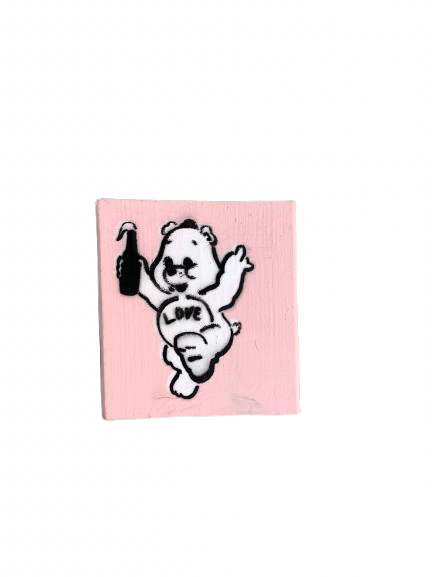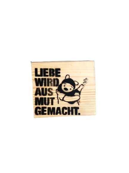 Bedrucktes Holzelement mit Motiven des Bonner Streeart-Künstlers Dropix