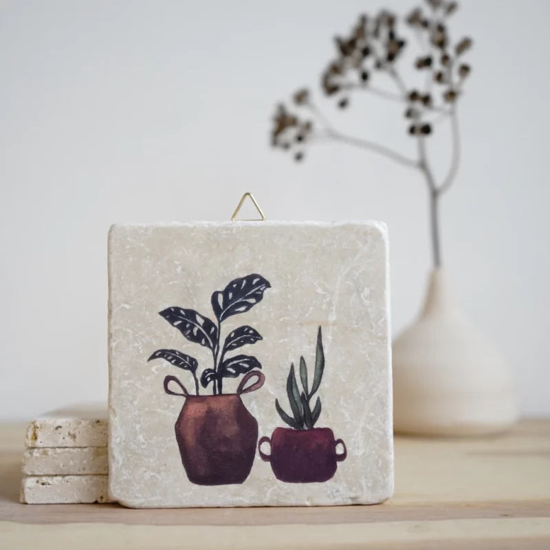 Steinfliese Pflanzen im Topf III